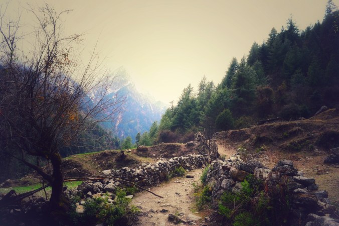 As much as one would like to say all is well now that we’ve made it down the pass, there was some drama last night. We were heading to our little cabin to call it a night, when we heard yelling. We saw one of the guides who had gotten very drunk, harassing a woman, hitting her around her middle, as she screamed back at him, struggling. And out of no where, our guide Tek the hero steps in to help her. The other guide kicked Tek and they really got into it, the woman too – she wasn’t sitting back while this guy caused trouble at her tea house. I initially thought there was a chicken involved because there were feathers everywhere, and I thought perhaps he was stealing a chicken and they were trying to stop him? But it turns out that the one guide had grabbed Tek’s jacket and ripped it, causing the down filling to spew out everywhere, feathers filling the air. At last Tek got him down and one of the porter’s, Chen Ho Susan came out and helped to hold down the struggling drunk guide. He had to be held down for a half hour while he screamed and hollered. And then cried. And then puked. And then was finally dragged limp to his bed. Good lord! I guess he let his celebrating get out of hand and he drank too much Raksi, the local moonshine. Some people just shouldn’t drink. He was of course deeply ashamed the next day and didn’t even remember what had happened. I was just glad Tek was around to help the woman! Continue reading