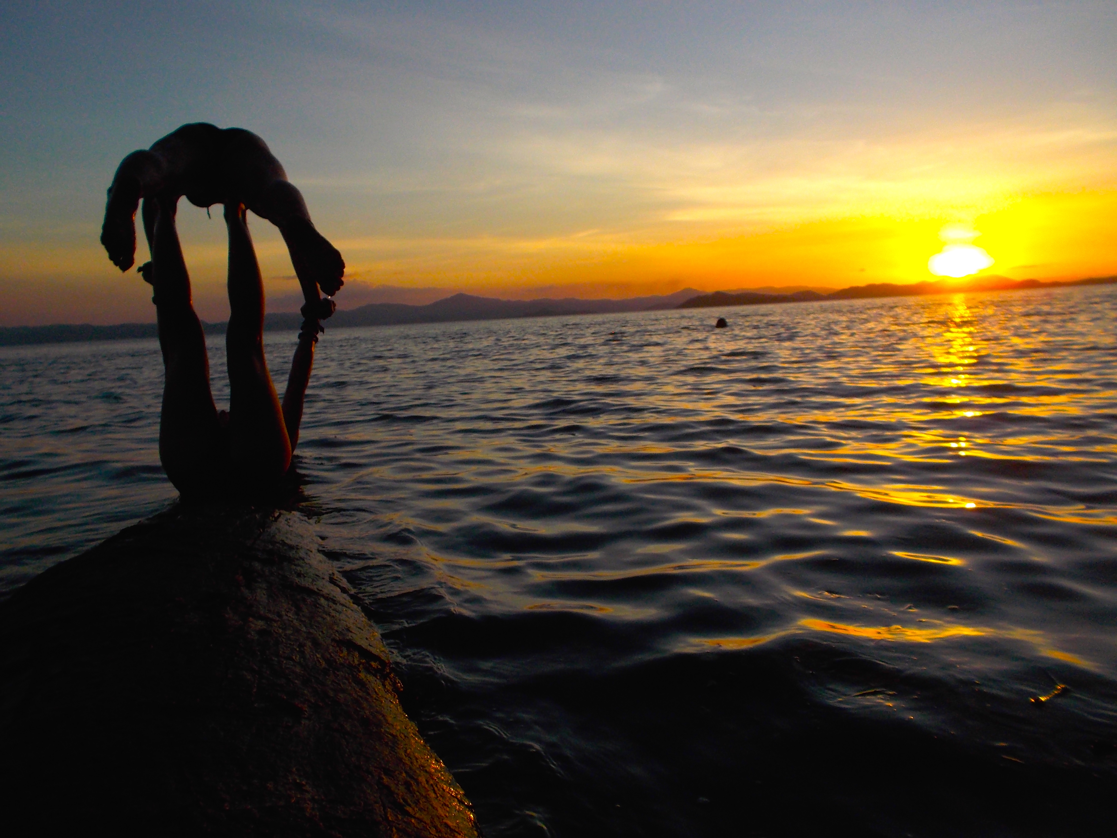 It was a lazy life those days in the jungle, eating the thick flesh off our coconuts, inhaling oranges, napping in the shade to the soothing sounds of slow electronic music beating in the background. You could wander the grounds, if you dared let yourself venture into the blistering sun. From stage to stage, from kitchen to showers, or wander down to one of the two beaches. You want to swim in the ocean to cool down, but the water is so tepid it’s like crawling into a warm bath on a hot day and doesn’t do much to ease the heat. On the small beach, you could walk out chest deep and if you stood still, small fish would come and nibble at the dead skin on your feet- a slightly ticklish, slightly frightening, but fun experience. People pay for this service elsewhere in the world, but at Organika, it was a gift of nature, free. You could walk along the rocky shore among the trees half submerged in the tide and search for the perfect seashells, as white flowers that smelled of bergamot fell from the trees above and landed in your hair. The larger beach was better for swimming and slightly cooler. We would make our way here each day for sunset as the sun displayed his glorious colours for us over the ocean and distant mountains across the peninsula. We swung on vines, practiced acroyoga on beached logs, built rafts from driftwood and climbed on each others shoulders in the lukewarm waters, toppling each other beneath the waves. We had sword fights with sticks on a log that acted as our plank, channeling our inner pirate, sending each other into the water with a stab left and a strike right. We laughed and played in the fading light of the coral skies as the sun sank behind the mountains, darkness settling in, as stars peeked out from their hiding place in the sky. Reluctantly we made out way out of the water and groped in the dark to find our things and head back to the festival grounds, thankful for the cool cover of night time.