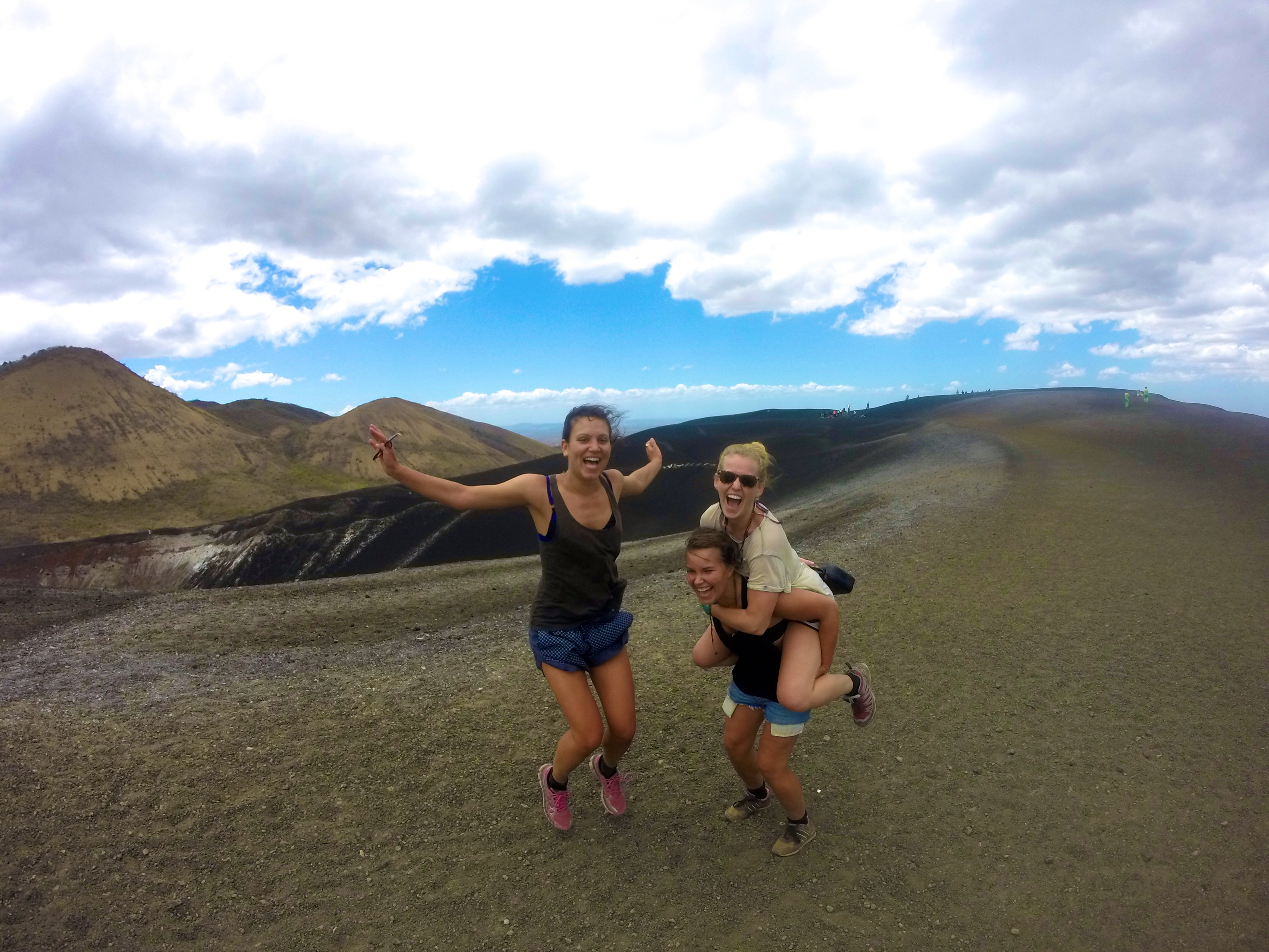 It was hard to tear ourselves away from simply standing, mouths agape, savouring these strange and otherworldly sights. But alas, it was time to suit up and send ourselves careening down the side of volcano, like any respectable human would do. There was quite the line up- being Semana Santa brought a lot of tourists to the area. We sat around enjoying the sights for a good half hour, sweating in our giant green jump suits and laughing at the people who were attempting to get their boards going. It was tricky at the start to get going, you really had to butt-hop for a while until you started to get some momentum. To be honest, the ride down was really anticlimactic for all of us. None of us got any speed- I suppose coming from Canada, I’m used to terrifying speeds sliding down hills in winter- but even so it just wasn’t that fun. We saw a couple of people get some serious speed but not many went much faster than we did. If the hike up hadn’t been so phenomenal, I would have been sorely disappointed in the whole trip, but the hike and the view made it well worth it.