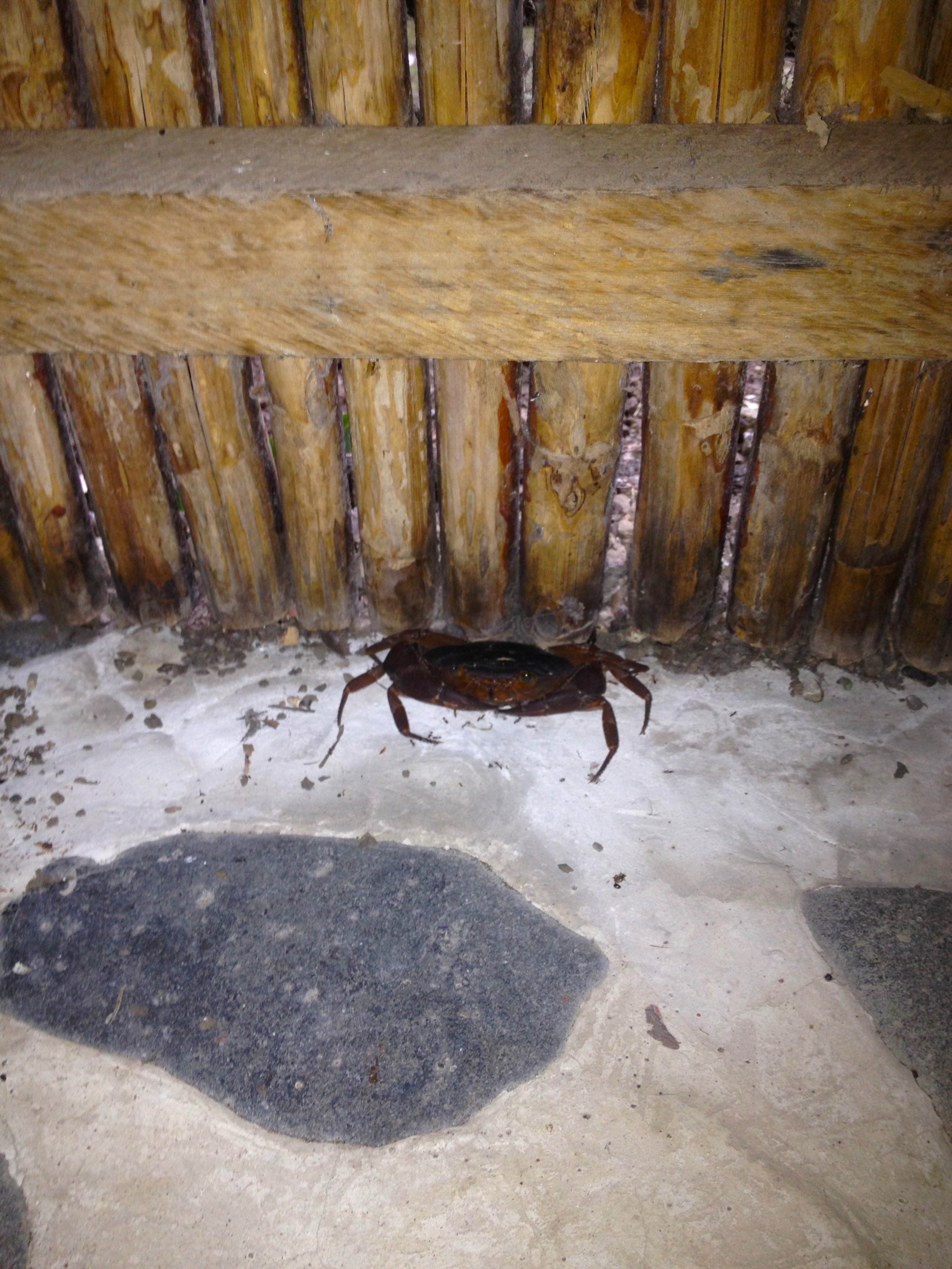 - Bugs- learn to love them! I come from a very Northern town on the globe where bugs are like the trees- puny, unimpressive and of little variety. So coming to Central America, where bugs are especially abundant, diverse and terrifyingly large, was a little shocking! Luckily, I adapt quickly and got used to the idea that I would be sharing my most intimate of areas- my beds, my showers and my toilets- with an abundance of creepy crawlies. The room I’m currently in had a hand sized crab next to my bed when I checked in. Then this huge dung beetle was on his way in the door last night before I diverted him. This beautiful butterfly was hanging out by the light switch. When I lifted my bag to grab something today a cockroach scuttled out from under it. The guy in the dorm next to me had a spider the size of his hand- no exaggeration, the man was nearly crying– inside his bag. I almost stepped on a toad the size of a guinea pig on my way to bed my first night. And all this in just one place! The deeper in nature you go, the more bugs there will be! And trust me, there will be bugs. There will be lots of bugs. My advice to you? Bring a bug net with you so you can sleep in peace at night. Bring and wear bug spray. NEVER have food in your dorm room. But most of all? Learn to face your fear of the creepy crawlies- it’s like anything, enough exposure to it and it loses it’s intimidation. I’ve blown three flying ants off my arm as I wrote this paragraph.