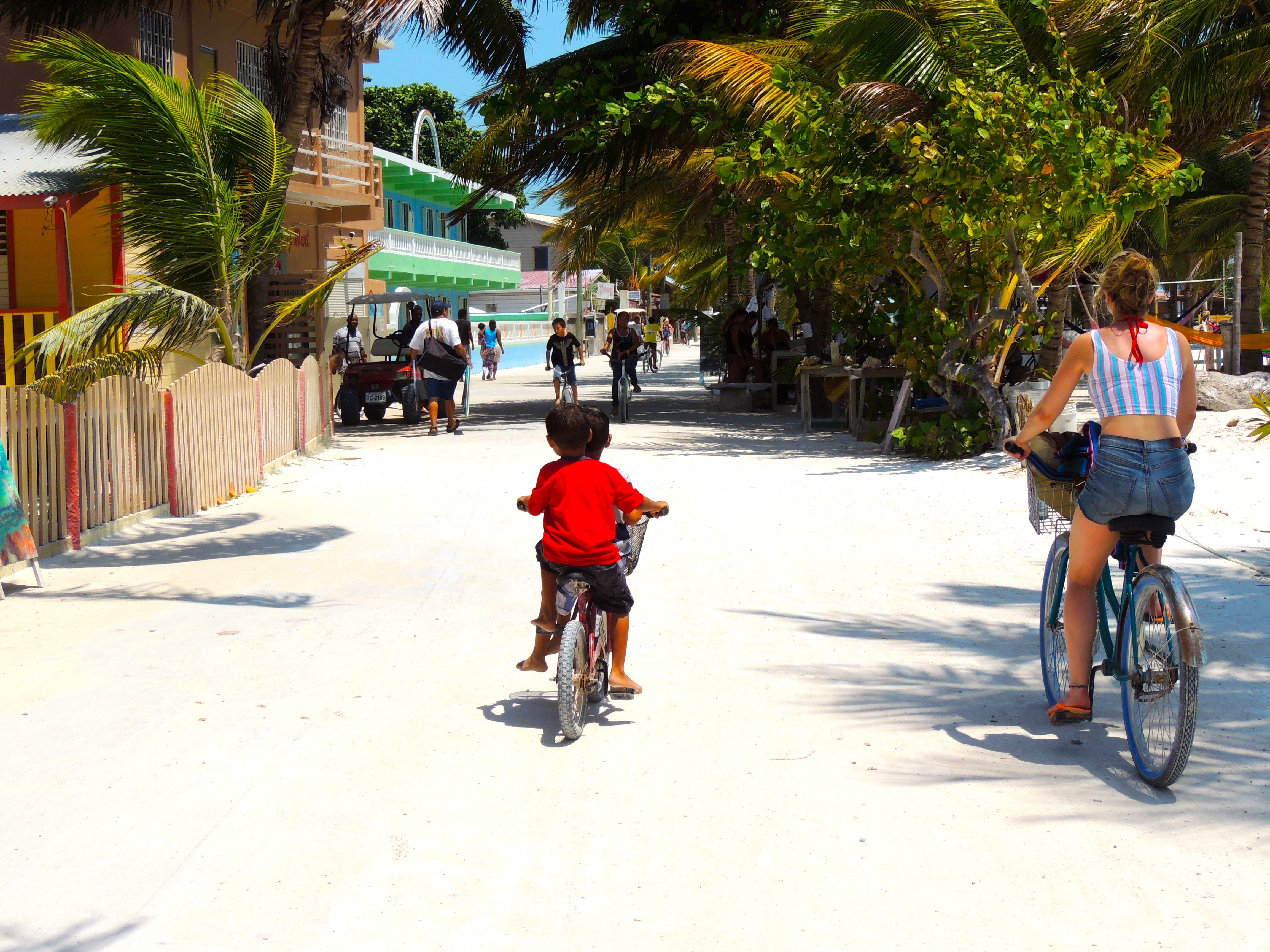 What an amazing first day on the island! Caye Caulker is a small island that doesn’t have a lot to do, but it’s a beautiful little paradise to relax and just catch some sunshine. We spent most of our time eating, because, well we just love to eat! We were in bed usually by 10pm after a huge dinner and dessert where we ate ourselves into oblivion. We rented bikes the next day and cruised the island. The little streets were all fine white compacted sand and made the whole island seem to glow with the brightness of the reflection of the sun. Most of the buildings were painted in bright pastel colours and palm trees lined the streets. It was a colourful, happy little island. If I thought Utila was a slow pace island, then Caye Caulker must be in super slow motion. There were no vehicles here, most everyone drove golf carts and there was the occasional scooter or motorcycle. Everyone walked and drove slowly- the motto of the island after all was “Go Slow”.