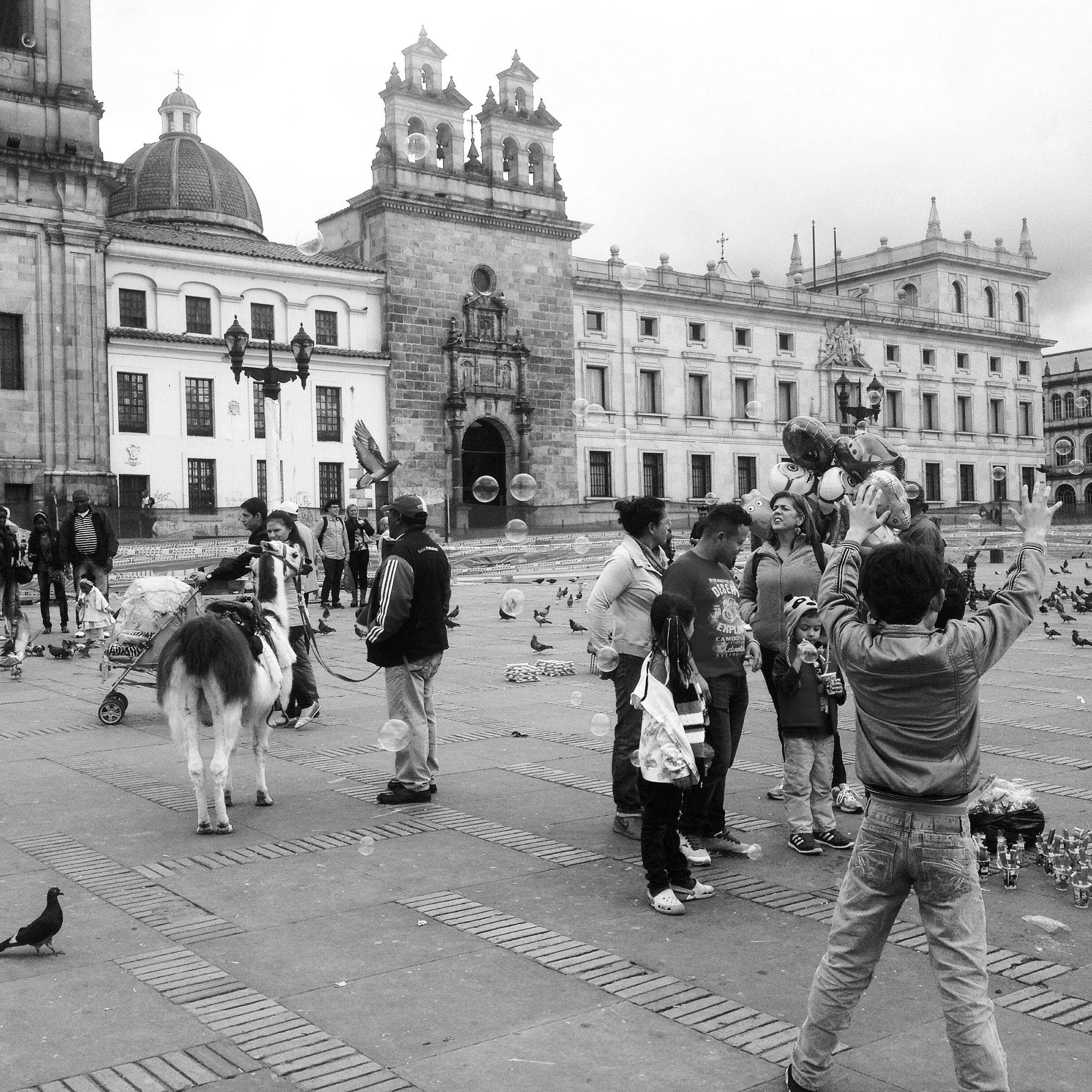 My favourite shot from La Plaza de Bolivar. This captures the essence of the public square- pigeons, bubbles, children, llama rides and incredible architecture.