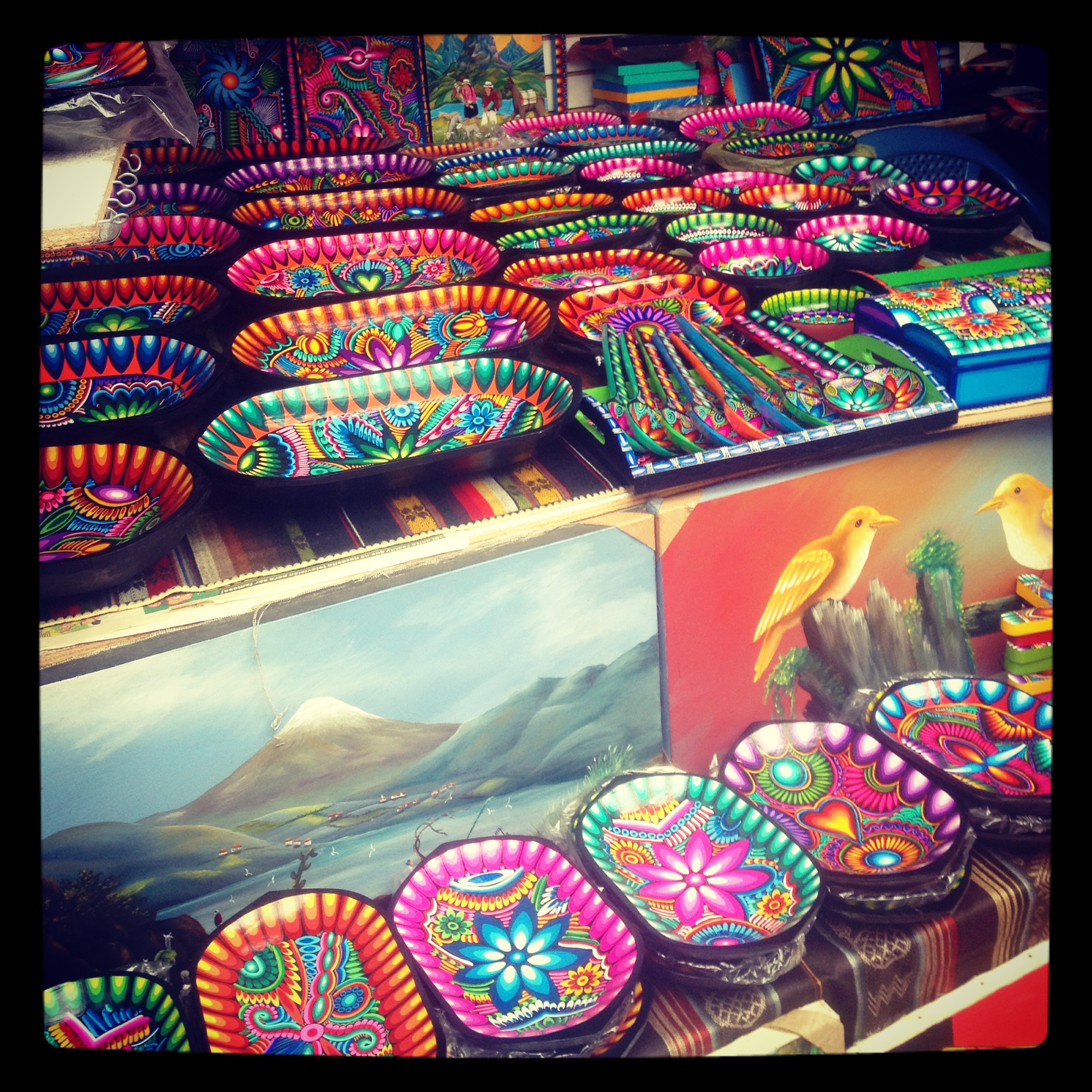 After going to the hospital and getting treatment and medicine at last to fix us, we made plans to bust out of Quito and head for the mountain town of Baños that I’d heard so much about.  On our last day I ventured down to the market to peruse and buy some warm alpaca items, as heading south it would only be getting colder. It was bold to venture so many blocks by foot from the hostel when I was still feeling so sick, but I couldn’t leave without seeing the market, which I was told was like a mini-version of the famous market in Otavalo.