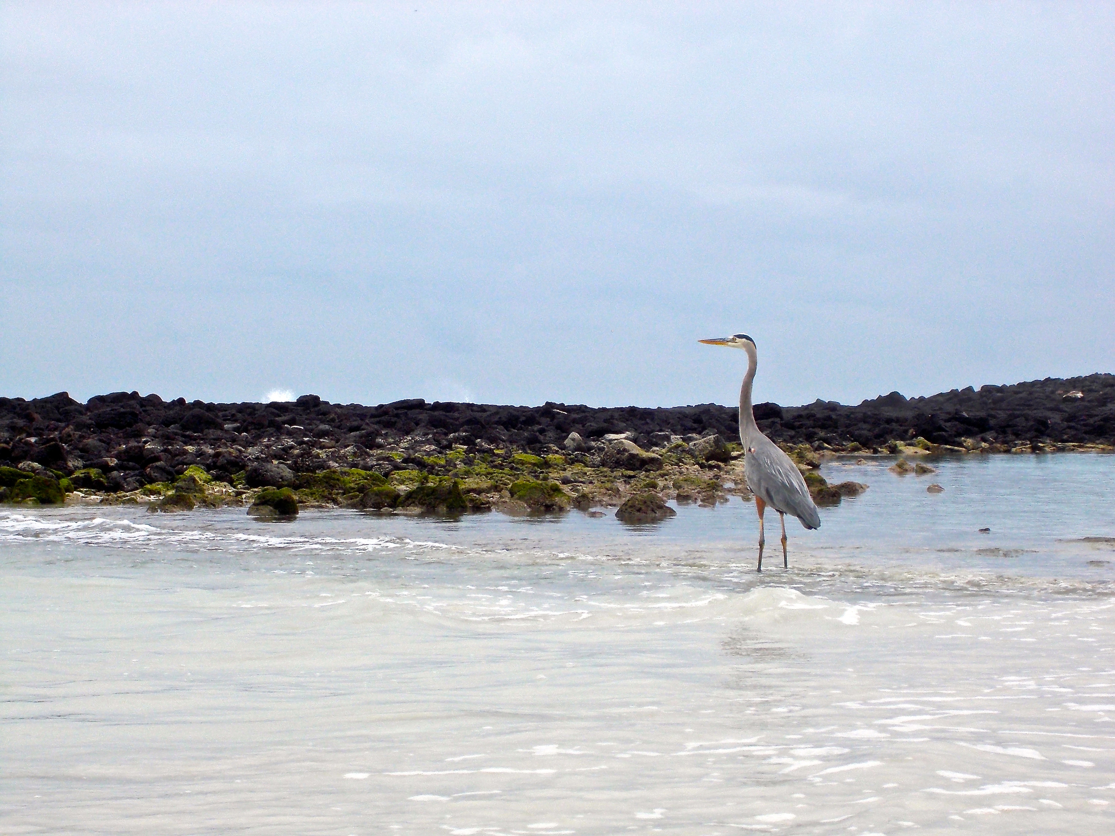 The next day we had to head back to Santa Cruz early for our last full day. We had plans to hike out to Tortuga Bay, the beach the islands were known for. It was an easy 45 minute hike along a nice lava brick path through thick vegetation. We finally made it to the shore and hiked further along the sand to reach the best section of beach. It was an overcast day but the beach was still beautiful. White sand stretched on forever, with black lava rocks here and there to break it up. The turquoise water, muted by the overcast sky was still bright and the waves crashed in hard. We lounged in the sand, watching the crabs dig their homes, herons swoop overhead in flocks of 5 or 6, lowly flying over the water, and cranes patiently standing in the water fishing for dinner. A few fat black marine iguanas lazily swayed their way up the beach to find the warm sand for sunbathing. After a while we moved to a second beach in a bay. I walked in the water ankle deep and spotted a sting ray by nearly stepping right on it! Luckily it noticed me before I noticed him and he swam off, shaking off the sand with a rippling of his wings. As he swam along shore and we followed him, a small shark around the same size as the sting ray swam up near us and got us all excited. But after spotting a strange spotted water snake, I kept to walking on the sand instead of the water!