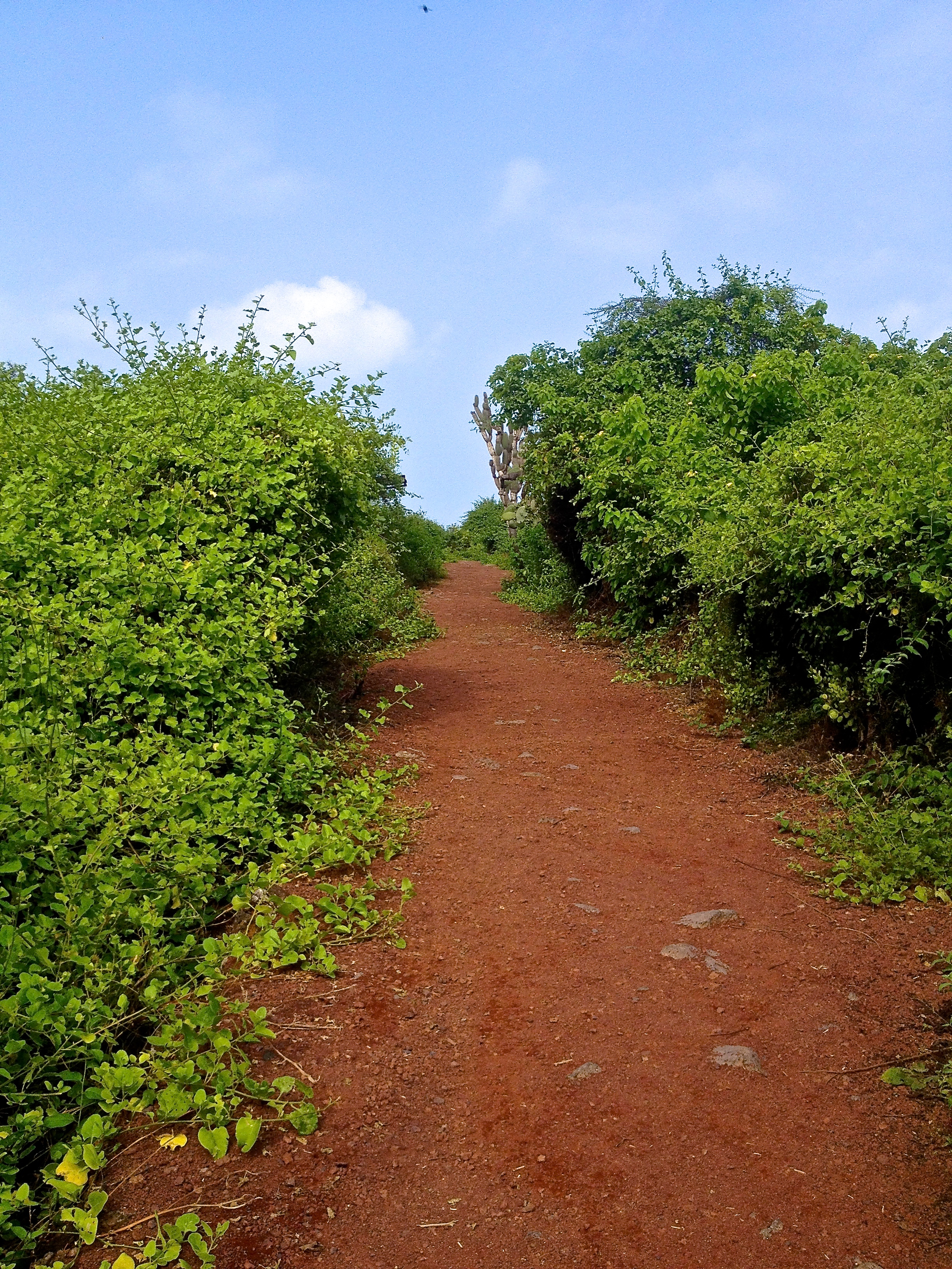 The ride out was fun and not too challenging with a mix of up and down on the dirt road. We ripped along a decent speed and I was lucky enough to spot a large, lumbering, brown mass slowly creeping into the bush- a giant tortoise in the wild! We stopped, dropped our bikes and watched the big guy shuffle slowly off. It was so much more exciting seeing one in the wild than in an enclosure. We kept going and up ahead of us three horseman came trotting towards us. They had two hogs slung over the saddles of one of the horses. We watched them walk past us and wondered why there were horseman hunting on a trail like this.
