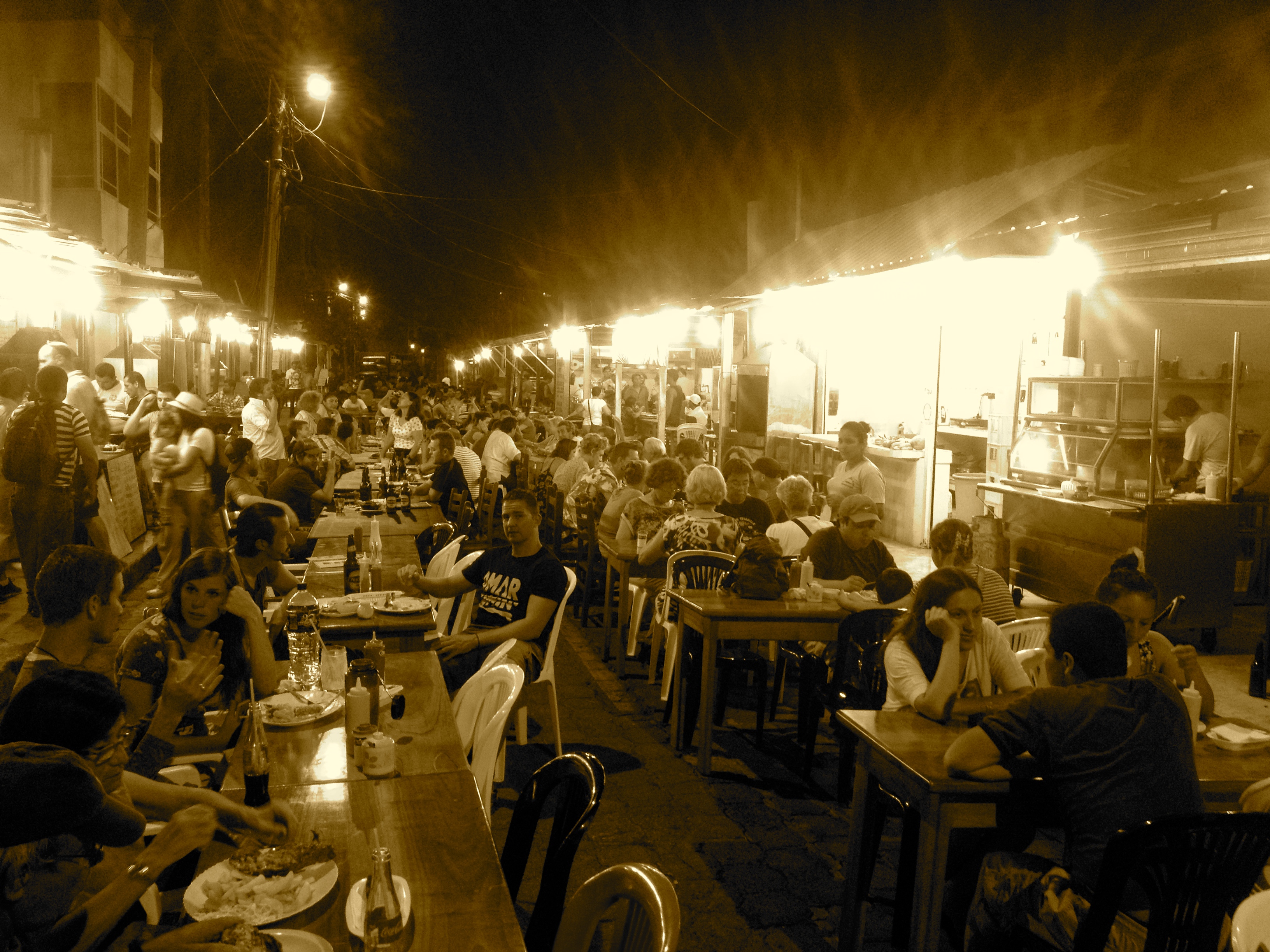 After the parade we sought out the cheap food street a couple of blocks from the main strip so we could eat cheaper. The whole street was a strip of food stands, the middle of the road filled with picnic tables and chairs for the patrons. The food was okay, nothing special, and still over priced, but much cheaper than the main strip. We had plans to head over to Isabela island in the morning bright and early so we headed to the hostel to catch a few hours sleep.