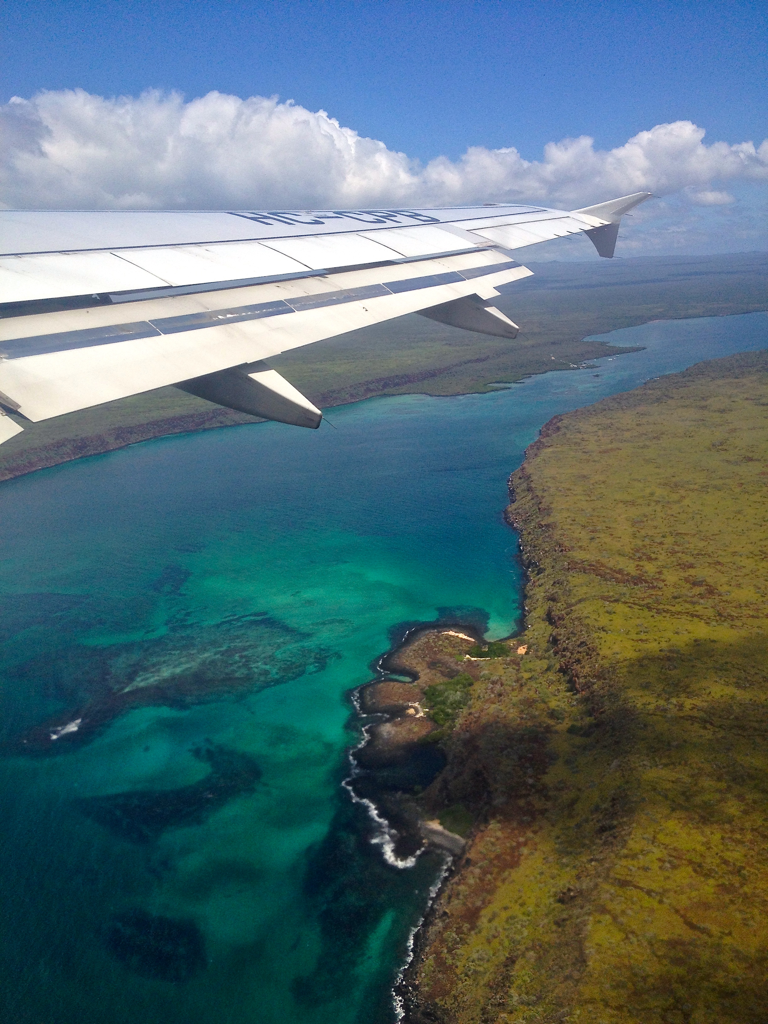 We paid the $100 entrance fee, had our passports checked, our luggage raided (lost a bag of chia seeds in the process, darn!) and then boarded our plane with a load of other tourists all excited for the trip of a lifetime. It was an hour and 45 minute flight out over the Pacific ocean and as the first island came into view we all excitedly peered out the little oval windows for our first look at the Galapagos.