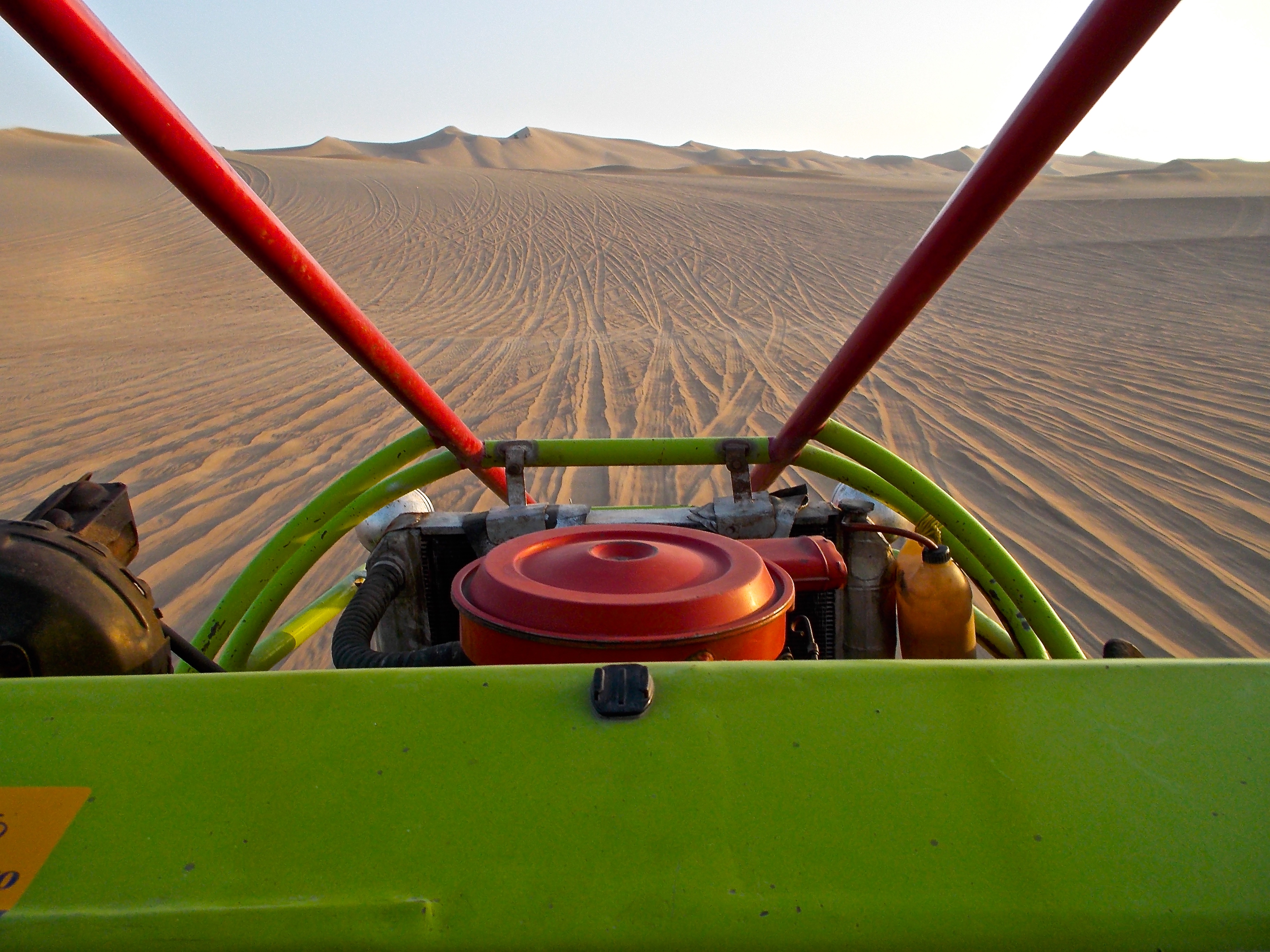 Before we started out I asked our driver in Spanish if he was the best driver in Huacachina. He said ‘no’ with far too much certainty for my liking. I put it aside as modesty and tried to pretend I was in great hands. Luckily the buggy was equipped with sturdy looking roll bars and I figured we would be fine. Our driver would distract me and point out the city in the distance and when he had my interest he would crest a huge dune and fly over it eliciting a scream from me. He got me twice and was about to get me a third time when sally screamed “NO IT’S A TRICK!” and saved me – thanks Sal!