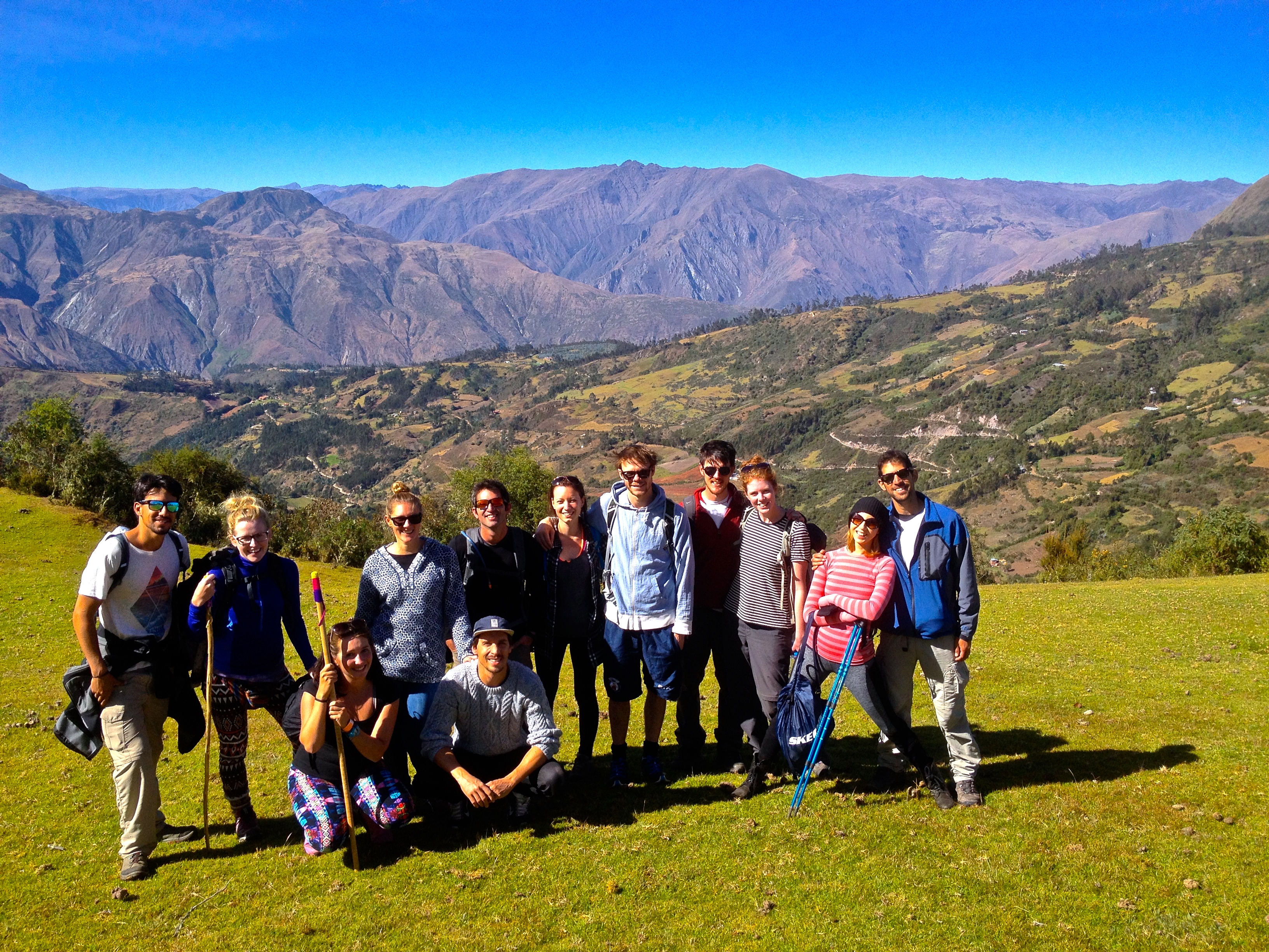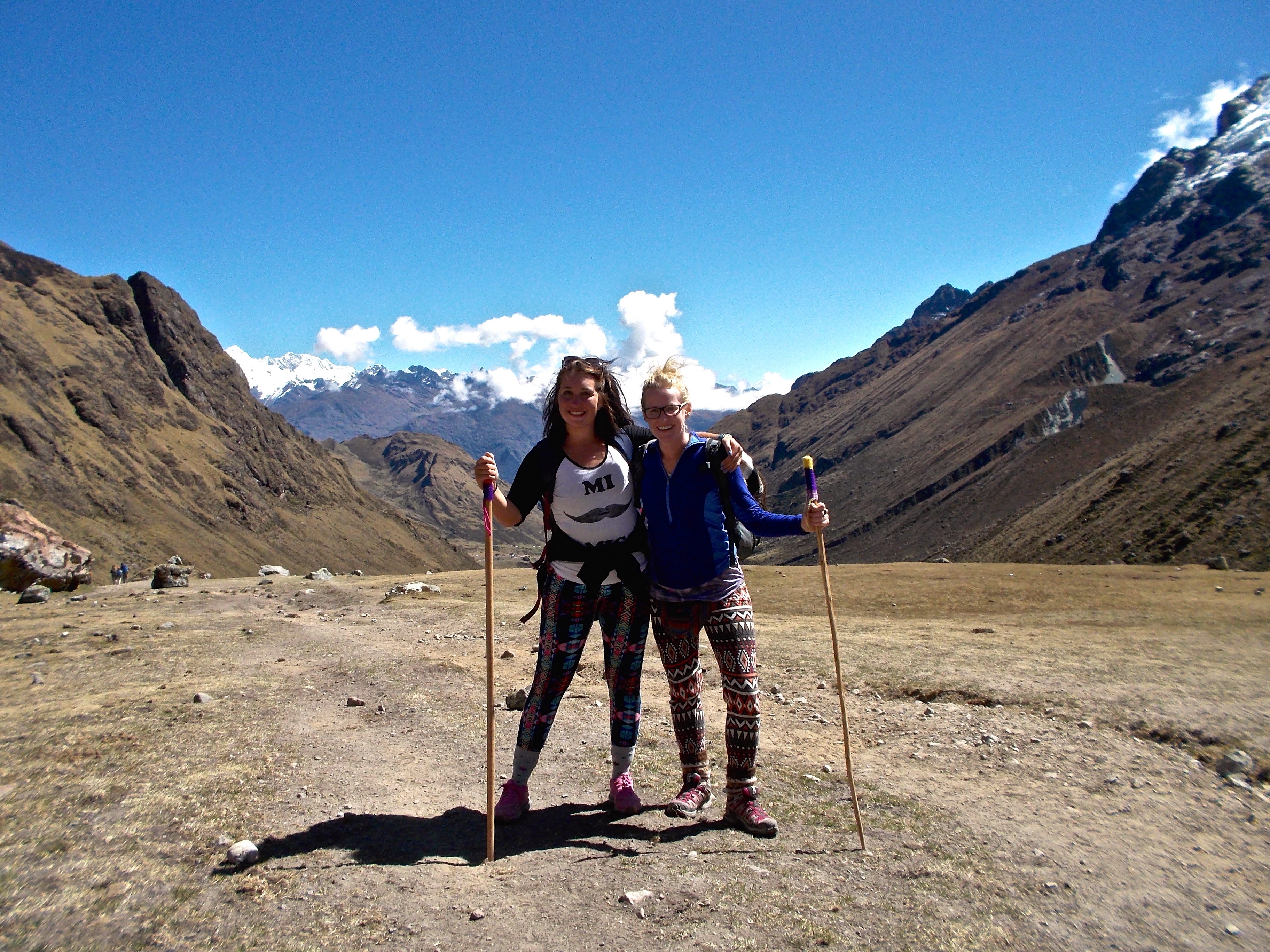 The bus dropped us in Mollepata, a small village in the mountains where we took breakfast and distributed our bags. We were each allowed to send one 5kg bag on horseback and then would carry our small day pack on our backs. Sally and I picked up two excellent walking sticks which I became especially thankful for the entire trek. I highly recommend a walking stick, if not two. Plus, ours came with adorable little colourful knit toppers! From here we drove up, up, up to our starting point Marqoqasa. We would be walking six hours this first day, 17km to reach Soraypampa at an altitude of 3850m.