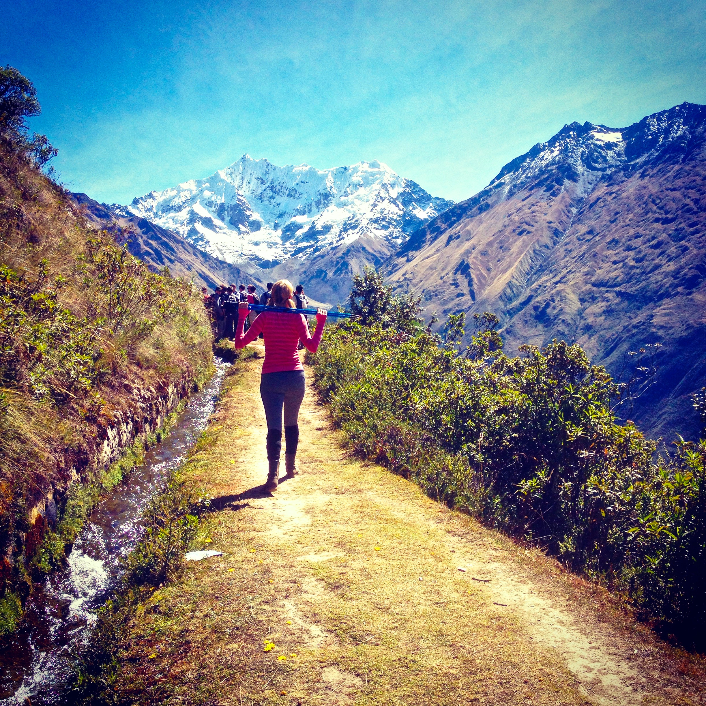 The next day three of our crew were out; one with bad knees, one with a revenge of his gut infection and another with a brand new gut infection that left her totally incapacitated. I commended them on taking the transport that was arranged; it was stupid to mess with serious illness or injury when you’re out here. We bid them farewell and were reunited with them at third basecamp. Day three was pretty, but a different kind of pretty. That’s the beauty of the Salkantay trek; each day you get this drastically different terrain to walk through. We had now moved out of the high, rugged mountains, and into the jungle. It was much warmer and we were surrounded by vegetation of all sorts. This day was mostly up and down in little parts and then flattened out. The day started out decent, even though I had hardly slept the night before; I was so cold, and couldn’t seem to get warm all night. My gastro bug was still present, yet not too over active. But I was not prepared for the sun. I brought a toque but not a baseball hat. I was expecting hot, not cold. We found ourselves in the sun for the majority of the day and while I had sunscreen on to protect my skin, I couldn’t protect my body from the effects of the heat and sun exposure for hours on end in other ways. I began to feel exhausted and nauseous.I was having intense heat waves racking my body. I was shaking. I was having chills.