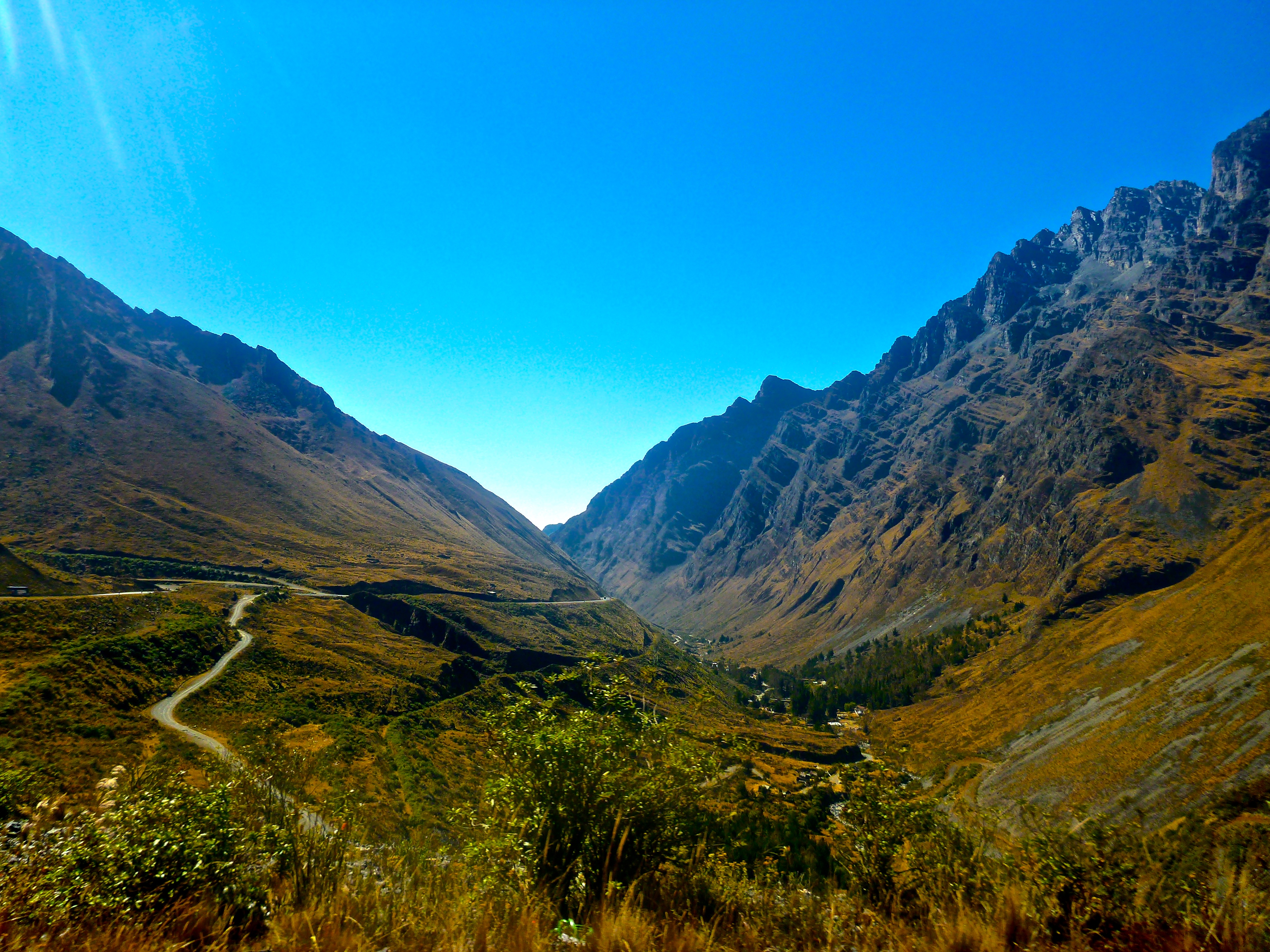 We had an early wake up of 7am and grabbed a quick breakfast from our hotel, then hit the road with our tour. It was about an hour drive up, up, up. We started the tour at the impressive altitude of 4100 meters. But luckily it was all down hill from there! I signed up for the tour because I knew it didn’t require any physical effort, it was gravity fed mountain biking after all! I definitely was in no condition with my haggard lungs to be exerting myself. We got geared up with all the protective equipment, had our briefing and hit the road. The first hour was on pavement, a highway shared with vehicles, as a way to get us comfortable with the bikes and their handling. But the pavement allowed for fast, easy cruising speeds! We had perfect weather, the sun was shining down on us and the air was crisp and cool, but luckily not too windy. I blasted down the hill – the first few minutes I was a little tentative, a little reserved, as I got to learn the bike and how she handled and how it worked on the corners, but soon I felt comfortable and confident and let it rip. I stopped touching the break entirely and let gravity take me at its mercy.