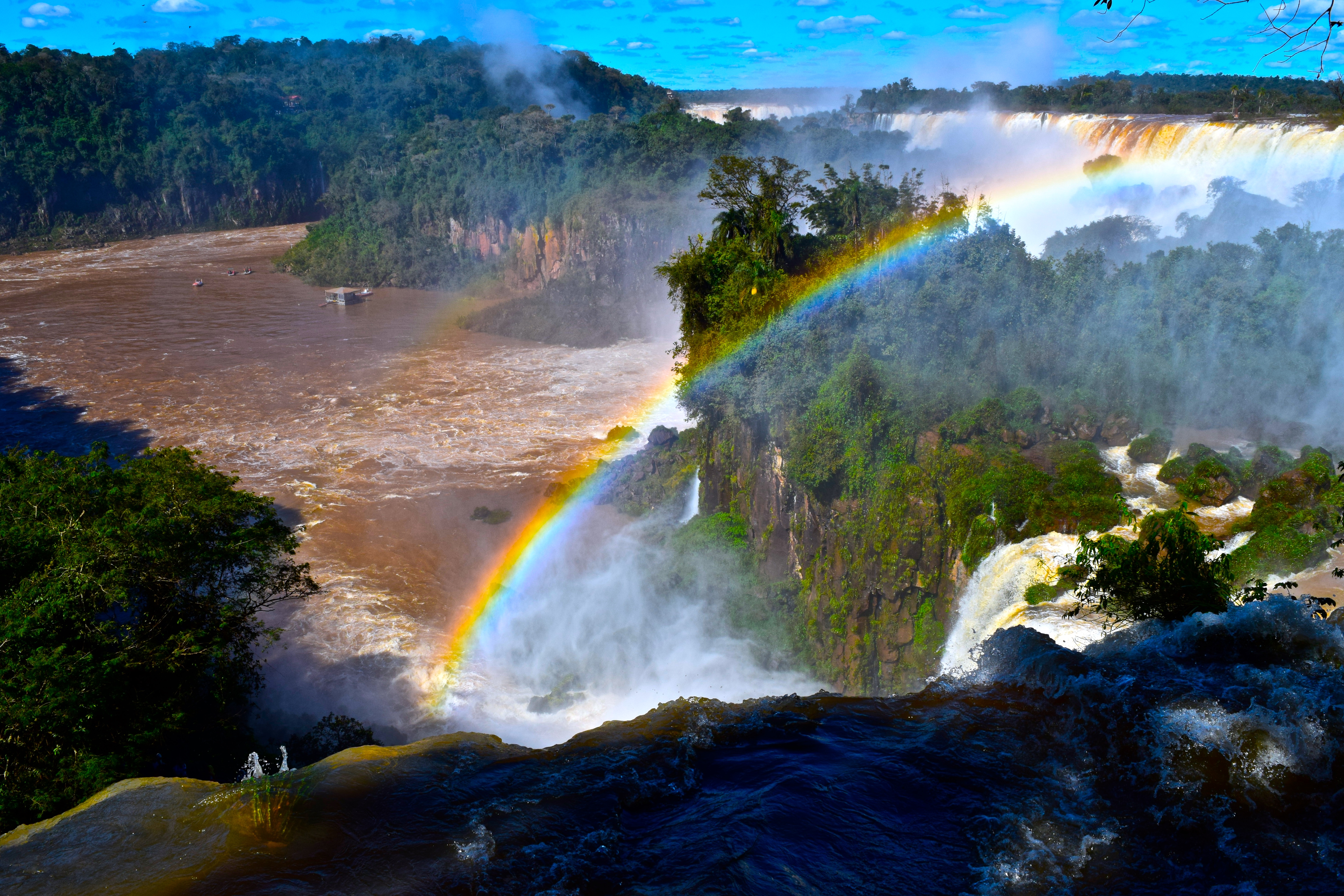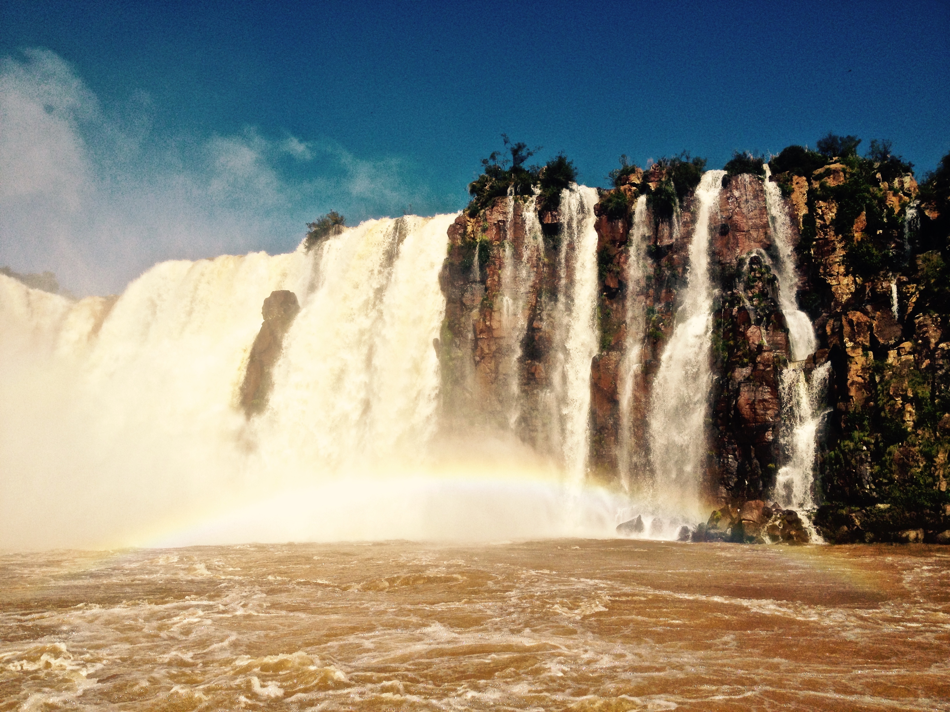 The legend of Iguazu Falls comes from the Guarani Indians who lived on the banks of the Iguazu river. The legend tells the story of the how the people would sacrifice beautiful women to the Serpent god by throwing them into the raging river. One day, the beautiful Naipi was walking near the river when the Serpent god noticed her and demanded she be the one sacrificed. She was betrothed to marry a great warrior, Taruba, and the lovers fled in a canoe to escape so they could be together. Enraged, the Serpent god chased them down in the river. In his rage he split the earth, thus creating the massive falls, and causing the canoe to tip. He took Naipi and transformed her into a rock on one side of the river, while Taruba was pulled into the earth on the bank on the other shore, his fingers becoming the roots of a palm tree. Thus the lovers were punished to live their lives forever in torment, always visible to each other, but never able to touch. But alas, you can always see a rainbow stretching from bank to bank across the falls, and people believe this is the lovers reuniting.