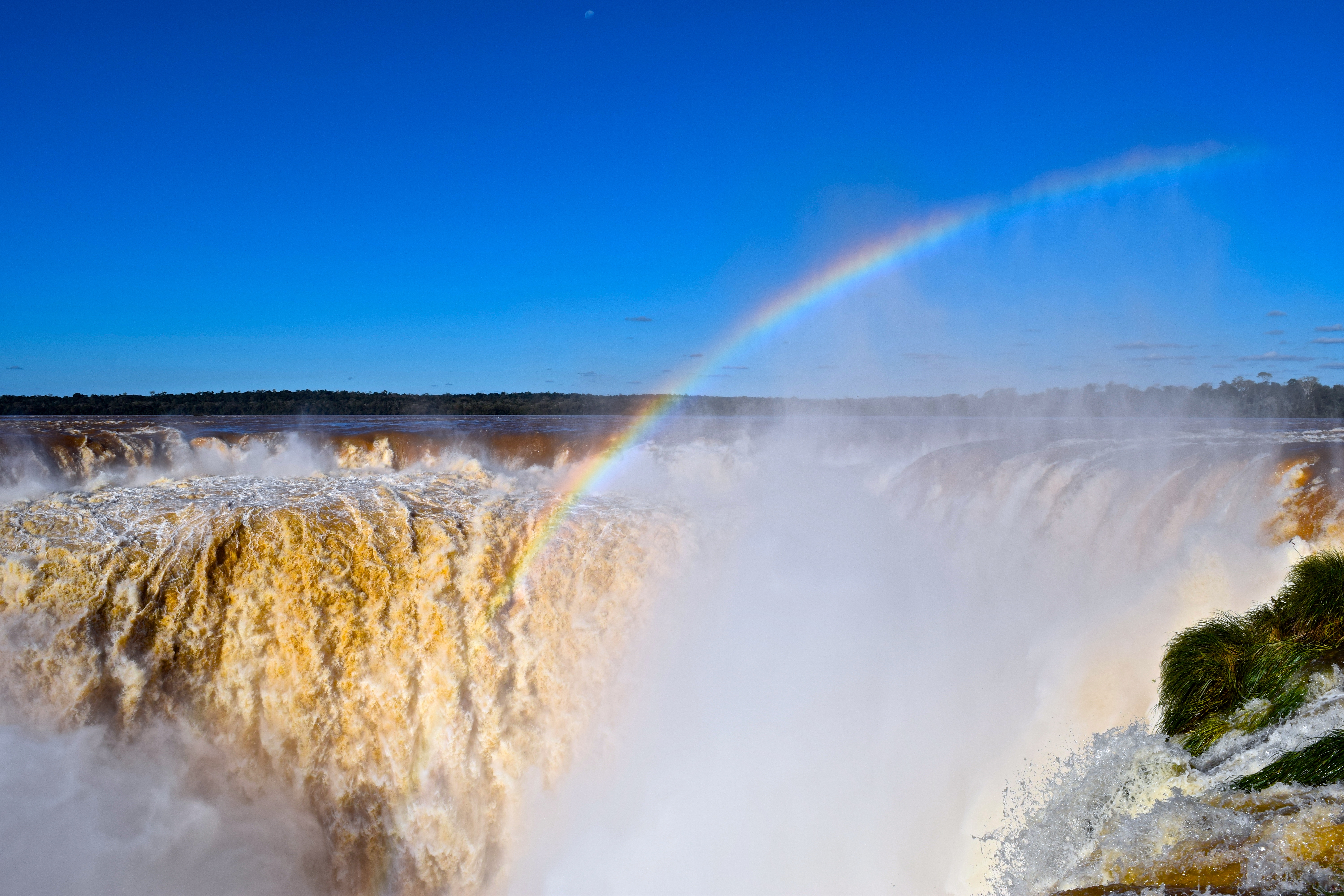The far left of Garganta del Diablo – the devil’s throat. You stand on a platform that hangs slightly over the canyon as the water pours beneath your feet to meet far below in the frothing mass. It’s simply spectacular.