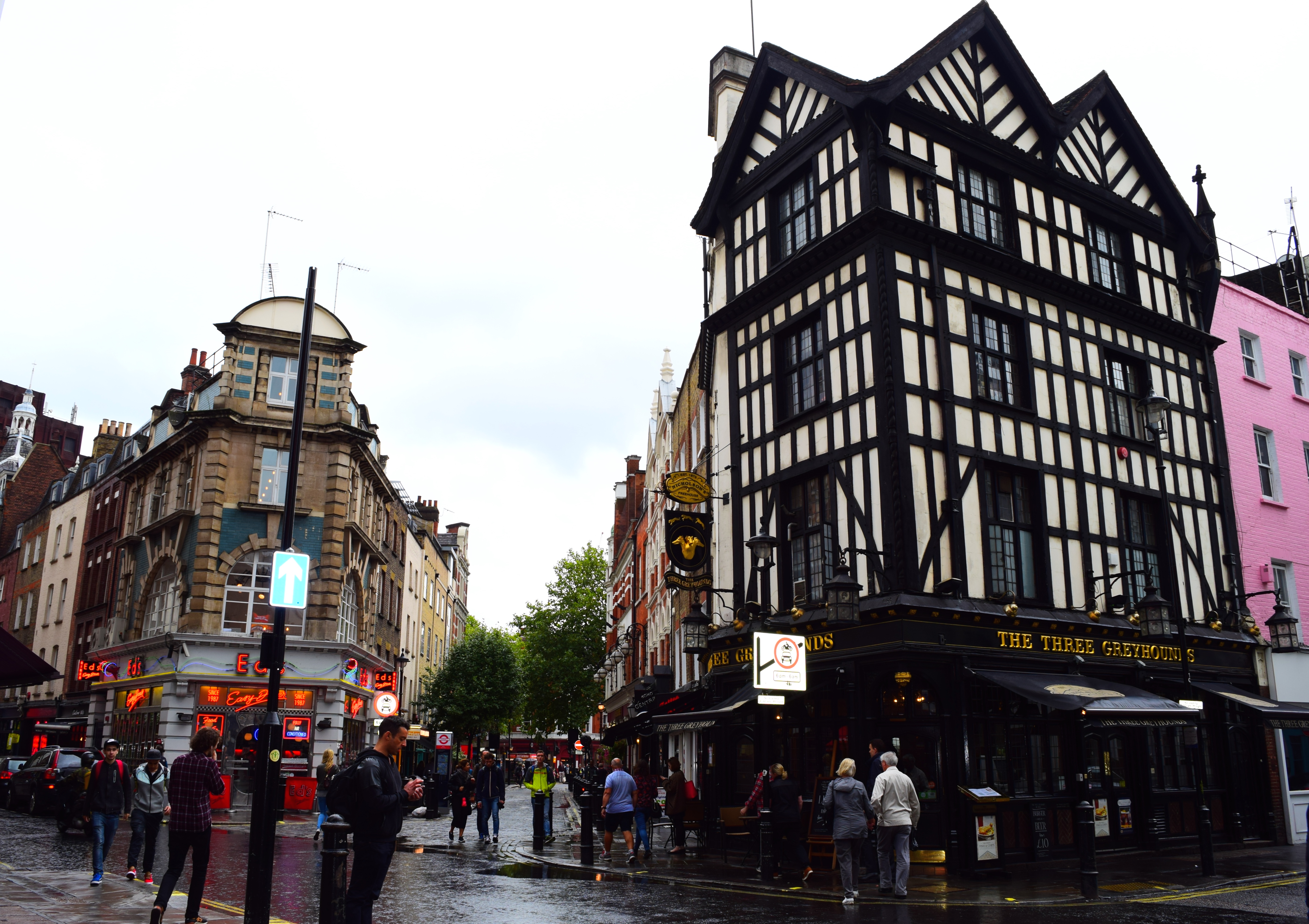 Note the umbrella (and the wet streets!)- the key accessory to every Londoner!