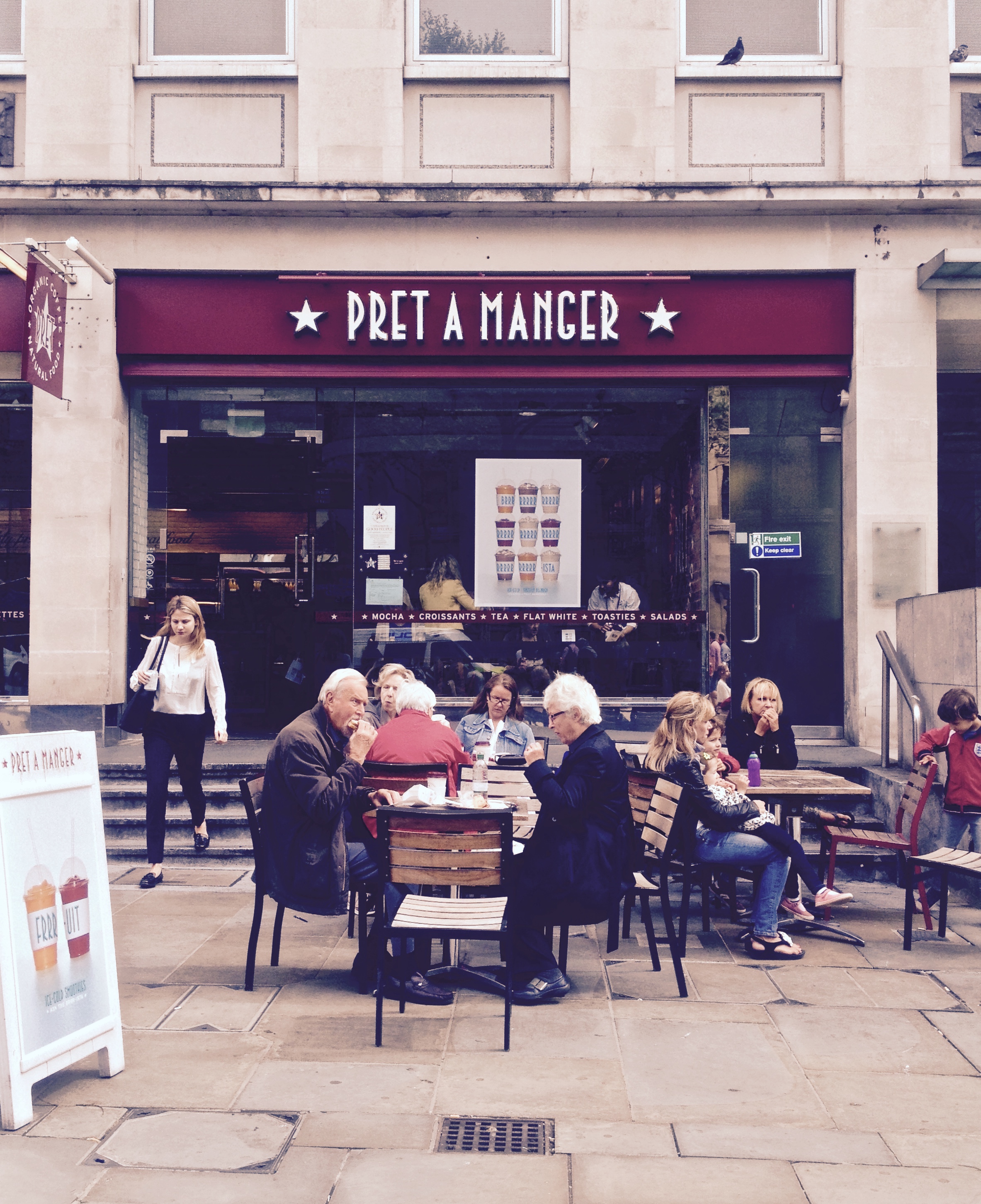 Each day began with my favourite new place to eat ever, Pret a Manger – a new healthy fast food chain that has taken to every single street corner in London- Starbucks is a thing of the past here now and Prets (as the locals call it) dominates the entire city, spreading like wildfire. I quickly realized I didn’t have to look on my ‘Maps Me’ app to find one as I could simply walk one block in any direction and I would find myself on their door step. I can’t even begin to tell you how good their food is. All of it is made fresh that day. They have delectable sandwiches of posh cheddar (I don’t even know what that means, but I like the sound of it!) and sundried tomato, salmon tzatziki flatbread or balsamic chicken and avocado baguettes. Salads of shrimp, edamame and mango, or falafal mezze. The best porridge I’ve ever tasted in my life ( quinoa, chia, amaranth, steel oats and flax) with honey to drizzle atop. Almond criossants. And for London prices, they actually weren’t that steep! I was heavily addicted and ate there at least once a day during my time in London!