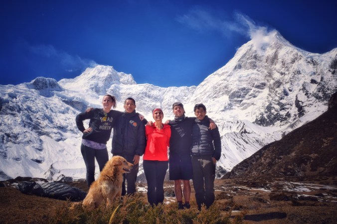 We set off last, as usual just before 9am. Guess who followed us? Maybe, the trekking dog! The trail was easy, mostly flat, and a mere three hours. But my pinched nerve in my back was absolutely killing me! It felt like someone had stabbed a knife into my back and left it there. I had to unhook my right shoulder from my pack strap to take some weight off and then eventually put my pack on my front, it was just far too painful on my back. The last 45 minutes was all uphill and I struggled. A lot. When we arrived I was utterly spent. Nothing left in me at all. I felt sick from the pain in my back. We went right to the lunch room to order and I felt terrible. Sick, woozy, dizzy, and weak. I immediately feared it was altitude sickness beginning. Thinking this was the case and fearing I would have to turn back or not being able to continue and ruin the trek for our crew, I ended up having a small panic attack. I tried to get my lunch down amid the nausea and dizziness, rode it out the way I have ridden out my panic attacks me whole life, but it was torture. I decided to needed to go for a walk, I needed to get out of there. Being in the cramped lunch room was making me feel even more panicked – I was terrified I was going to throw up or pass out in front of everyone and so I finally escaped with Travis. Immediately it helped. We walked through the small village, and kept walking for over two hours all over this beautiful area, taking in the spectacular views all around us. We made it up to 4030 metres and I felt a thousand times better; I had so much energy! I was even upside down doing headstands looking at the panoramic views from a whole new perspective at 4000m. It made me realize of course that earlier it was not altitude making me feel sick, but one of my usual panic attacks. I was having such anxiety about how high we were, about not being able to do it, that I freaked. Hopefully I don’t have any more of those, talk about an awful place to have a panic attack!