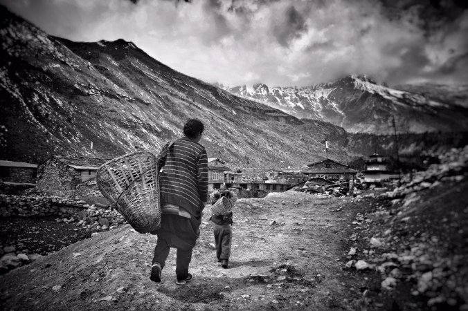 Walking through the village allowed us to get an insight into what life is like all the way up here, so far removed from the rest of civilization. The only connection to the rest of the world is the hiking path we walked here on. There isn’t a road for nearly a week by foot. It felt like stepping back in time hundreds of years, before cars and all the modern comforts we enjoy. Houses were built from rock and mud, the only sign of the modern world were the bright blue corrugated metal roofs, a new addition since the 2015 earthquake. The damage from that quake was so substantial that over 9000 people died and over double that number were injured. With a magnitude of 7.8, it rocked the Gorkha region, where Manaslu lies, and devastated the land and villages here.