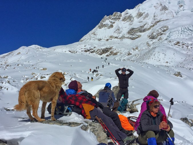 And miraculously… Maybe followed us yet again! This crazy dog is now hanging out at camp with all us trekkers. He came into our room and laid down and I felt awful and wanted to let the poor thing stay so he wasn’t left in the frozen cold alone, but Jan wasn’t too keen on a stray dog sleeping with us – which is fair enough – so we had to boot him out. I tried to pawn him off on other trekkers, but no takers.