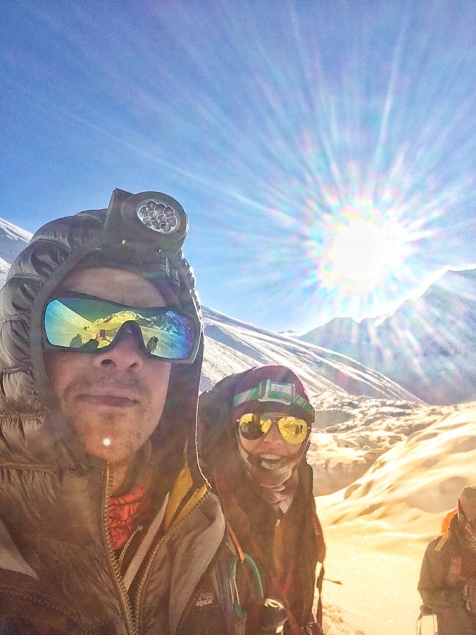 And then of course my anxiety kicked in. I feared I was experiencing altitude sickness and was sure I was suffocating and would need to take a helicopter out if I couldn’t soon breath properly. I honestly wondered if I would just suffocate in my sleep and die on the mountain. Anxiety is a cruel bitch. But at last 3:45am rolled around and we all got out of bed. It was a wretched start. Travis and I got in a fight right away. I was really freaked out from not having slept all night because I felt like I was suffocating, and was still struggling to breathe properly. I told him this and how I was worried about not being able to do the final climb today. He asked if it was my asthma and I told him that I thought it was the altitude. And that was the end of our conversation. I was hurt by the fact that he didn’t care to ask how I was or check in further with me or comfort me in any way- this is why I had reached out to him in the first place. Instead, I felt abandoned and angry and sad and entirely on my own. He got mad at me then for putting his shorts and glasses on his bed where he didn’t see them and so got knocked on to the floor. Then there was a fit over getting our sleeping bag liners mixed up and Trav threw his down on the ground like a child. Maybe I wasn’t the only one the altitude was affecting. Needless to say it was a brutal start -for both of us- and set the tone for the first couple of hours.
